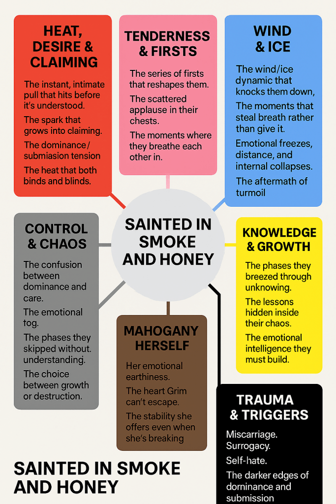 Sainted in Smoke and Honey are about a man and woman named Grim Saint Lucas and Mahogany Monroe. They met one fateful night at a jazz club and the force that hit him was unrecognizable yet intimate. They go through a lot of firsts and with each exhale created scatter applause inside that neither could ignore, and it was time that he came to claim what was his.